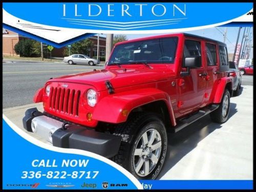 Drive this unique and certainly able to manuever through any terrain with this 2013 Jeep Wrangler Unlimited Sahara! Equipped with, Uconnect 130 CD/MP3, SiriusXM Satellite Radio, Alpine Premium Audio System, Steering Wheel Mounted Audio Controls, Freedom Top Black 3-Piece Hard Top, 5-Speed Automatic Transmission, Remote Start System, 3.21 Rear Axle Ratio, Transfer Case Skid Plate Shield, Tubular Side Steps, Fog Lamps, Next Generation Dana 44 Heavy Duty Rear Axle, Next Generation Dana 30 Solid Front Axle, and 18-Inch x 7.5-Inch 7-Spoke Polished Aluminum Wheels! Family owned and operated for 87 years. Visit our store today, you will see that we deliver the best dealership experience you have ever had. New vehicle prices include Factory incentives and rebates for SEBC (VA, NC, SC, GA, FL), RAM Trucks and Chrysler 200s (except convertibles) include $500 Chrysler Capital Financing. On approved credit