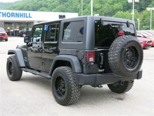 Look at this 2013 Jeep Wrangler Unlimited Sport. This Wrangler Unlimited has the following options: TRAILER TOW GROUP, BLACK 3-PIECE HARD TOP, Front stabilizer bar, Pwr steering, Halogen headlamps, Audio input jack, Tilt steering column, Speed control, Sentry Key theft deterrent system, Sliding sunvisors w/mirrors. It has an Automatic transmission and a Gas V6 3.6L/220 engine. See it for yourself at Thornhill Ford Lincoln, US Rt. 119 Admiral Rd., Chapmanville, WV 25508. Go In Style...Go THORNHILL