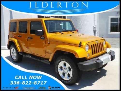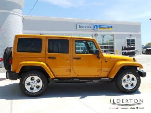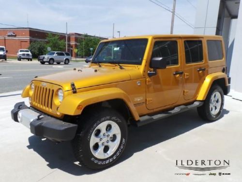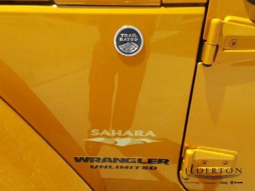 This outstanding example of a 2014 Jeep Wrangler Unlimited Sahara is offered by Ilderton Dodge. This Jeep Wrangler Unlimited Sahara is an incredibly versatile vehicle that is a must have for any family. When Jeep created this Wrangler Unlimited Sahara with 4 wheel drive, they immediately enhanced the performance ability. Easily switch between two and four wheel drive to take advantage of the improved steering and superior acceleration. Based on the superb condition of this vehicle, along with the options and color, this Wrangler Unlimited Sahara is sure to sell fast. More information about the 2014 Jeep Wrangler Unlimited: Equipped with, Black Cloth Interior with Sahara Badging, Keyless Entry, power features, 6.5 Touch Screen, Uconnect(R) 430N CD/DVD/MP3/HDD/NAV, Alpine Premium Audio System, Steering wheel audio controls, Hands Free Talk, Voice Command, 4WD Shift, Class II 4-Inch Receiver Hitch, Freedom Top Body-Color 3-Piece Hard Top, Tubular Side Steps, Fog Lamps, Front Tow Hooks, Command-Trac Shift-on-the-Fly 4WD System, Next Generation Dana 44 Heavy Duty Rear Axle, Next Generation Dana 30 Solid Front Axle, and a 3.6-Liter V6 24-Valve VVT Engine! Interesting features of this model are Iconic styling, impressive off-road prowess, and 2- and 4-door configurations available Family owned and operated for 87 years. Visit our store today, you will see that we deliver the best dealership experience you have ever had. New vehicle prices include Factory incentives and rebates for SEBC (VA, NC, SC, GA, FL), RAM Trucks and Chrysler 200s (except convertibles) include $500 Chrysler Capital Financing. On approved credit