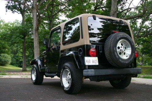 1998 Jeep Wrangler Sahara Sport 4.0 L 6 Cyl w/ Hardtop. Due to recent move I will no longer be utilizing the Jeep thus up for sale. My overall experience is that I have never had any issues with this Wrangler as it always starts and never lets me down. Great heat and cold AC. Black paint does have some scratches and nicks, with a rust spot coming thru on rear by tailgate. Very presentable at 10 foot, but up close does show some wear as seen in photos. I bought this vehicle for short commutes to work in winter months and have never had any mechanical issues. It is not a garage queen, but a reliable vehicle. Interior is clean, seat have no rips or tears. Carpet could be replaced or removed, but is still decent. I purchased the vehicle in Nov 2011 with 92,500 miles and currently has 97,500. Putting 5,000 miles on in 3 years. During my ownership I have spent approximately $ 3,422.64 in work into the vehicle. 23 Dec 2012 @ 95,832 miles Goodyear replaced brake lines front to rear and flushed the brake system. $ 610.00 28 Oct 2013 @ 96,357 miles Goodyear replaced All four Ball Joints-Upper and Lower Control Arms $769.80 / Two Front Sway Bar Links and bushings $301.39 / Installed Front Brake Pads and Rotors $ 232.85 / Installed Rear Brake Shoes & Drums w/ Wheel Cylinders $ 313.79 / Front Steering End Complete Tie Rods, Sleeves, Center Link, /front and Rear Shocks replaced. $ 645.55. 29 Oct 2013 Goodyear replaced Radiator w/ Coolant Flush $ 356. / Front and Rear Differential Pinion Seals, Rear Diff Pan gasket $ 208.85 w/ $ 169.05 discount. In addition to the above the following is the maintenance schedule I have personally performed. 12 Nov 2011 @ 92,635 miles Installed Cold Air intake filter / Anco Wiper Blades / Techtron Fuel Cleaner / Cleaned Engine Compartment. / Changed Oil w/ 6qts Mobil 1 Synthetic High Mileage 10w-30 w/ Fram Extended Guard XG-16 Filtre 18 Nov 2011 @ 92,638 miles Installed 6 Bosch Platinum II Plugs. 5 new 7mm BWD Super Mag Spark Plug wires. 1 New Rotor and Distributor Cap. / Two rear window lift support shocks / struts. 28 Jul 2012 @ 95,393 Changed Oil and Filtre with same products as noted above. 20 Oct 2013 @ 96,583 Changed Oil and Filtre with same products noted above. Replaced wipers with Bosch front and rear. Waxed w/ Maguires FX wax. I also replaced the Trans / gear box fluids and rear Differential Fluids within the last 1,000 miles, but can not find specific records for this. I did use specific fluids recommended on Jeep Forums. Pioneer AM/FM CD with overhead sound Bar Hood Locks installed Cold Air Intake Borla Muffler Have original Owners Manual Please feel free to contact me thru E-Bay with questions. I will respond to answer any questions you may have prior to bidding. Thank you. |