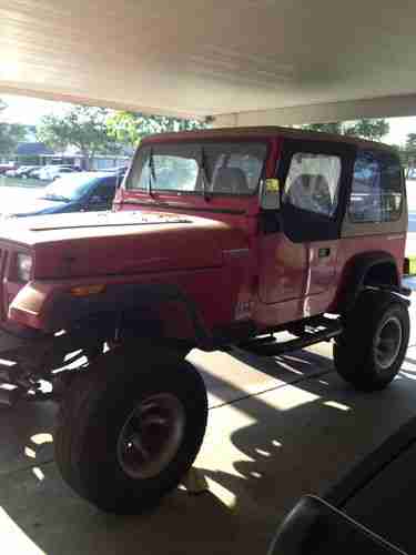 FOR SALE IS MY NR NO RESERVE 1995 JEEP WRANGLER, 2.5L, 4X4. RED WITH A TAN HARD TOP. THIS JEEP NEEDS WORK. THE REAR AXEL PINION GEAR SNAPPED ON THE HIGHWAY WHICH LOCKED UP AND DESTROYED THE GEAR BOX AND TRANS. ENGINE IS FINE. I HAVE A REPLACEMENT BA-10 TRANS MATED TO A NP-231 GEAR BOX READY TO GO IN. "TOLD WAS SOLID WHEN I PURCHASED" THE REAR END WILL NEED TO BE REBUILT WITH A NEW PINION GEAR, VEHICLE DOES ROLL (NOT LOCKED UP). THE ENGINE RUNS STRONG. HOWEVER HAS BEEN SITTING FOR A FEW MONTHS AND WILL NEED A TUNE UP. THIS WAS MY DAILY DRIVER AND I HATE TO SEE IT GO, BUT I RECENTLY HAD TO GET OUT OF THE MARINE CORPS DO TO A BACK INJURY AND AM UNABLE TO DO THE WORK. THE JEEP IS CURRENTLY LOCATED IN BRADENTON, FL. I LIVE IN TENNESSEE. HOWEVER EITHER MYSELF OR A FAMILY MEMBER WILL BE PRESENT WHEN THE VEHICLE IS TO BE PICKED UP. NO STEREO. THE JEEP USED TO HAVE A SOFT TOP (IT WILL COME WITH THE FRAME, BUT THERE IS NO CANVAS) WHICH IS WHY THE WINDOWS ARE BLACK AND STICK OUT A BIT. THE HARD TOP ACCEPTS ROUNDED WINDOWS. THE UPPER DOOR SOFT WINDOW FRAME'S NEEDS TO BE CUT AT THE TOP REAR CORNER AND ROUNDED. THEN PURCHASE APPROPRIATE NEW SOFT WINDOWS (ABOUT 50 BUCKS ON EBAY). ALSO THE REAR WINDOW WAS SMASHED SO I HAVE A TEMPORARY PLEXIGLAS ONE IN PLACE FOR THE MOMENT. SEATS REQUIRE NEW COVERS. WITH A LITTLE BIT OF WORK AND A FEW HUNDRED DOLLARS IN LABOR/PARTS YOU WILL HAVE A SOUND GOOD LOOKING JEEP THATS GOOD ON GAS. THE BODY IS VERY STRAIGHT FEW SMALL DENTS AND CHIPS. THERE IS SOME SURFACE RUST ON THE SIDE RAILS AND BUMPERS BUT THE BODY, FRAME AND UNDER BODY HAS VERY LITTLE IF ANY. MILEAGE LISTED IS NOT EXACT. ITS CLOSER TO 150000, BUT THE VEHICLE IS LOCATED IN FL AND I AM NOT ABLE TO CHECK IT AT THE MOMENT. I HAVE NEVER HAD IT OFF ROAD, AND AS FAR AS I CAN TELL IT NEVER HAS BEEN. IT DOES HAVE A BODY LIFT APPROX. 2-4 INCHES AND 35 INCH TIRES (20-30% TREAD LEFT) ANY QUESTIONS FEEL FREE TO ASK. I WILL BE IN FL AROUND THE 12TH - 16TH, SO THERE SHOULD BE NO REASON THAT I NOT BE THERE AT TIME OF VEHICLE PICK UP. BUYER MUST HAVE A PAYPAL ACCOUNT AND POSITIVE FEEDBACK. IF YOU ARE A NEW USER YOU MUST CONTACT ME FOR APPROVAL TO BID.