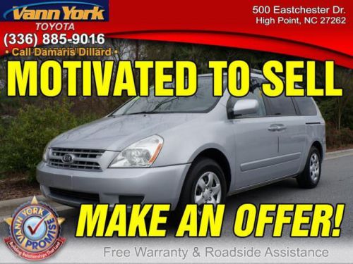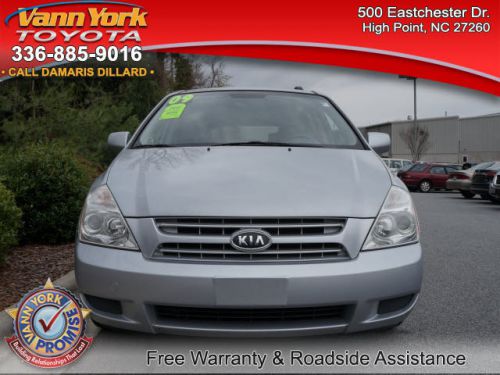 Deep Internet Discounts available on this USED 2009 KIA SEDONA. Fill out this form or contact Joseph Bristow, Damaris Dillard or our Internet Sales Department at 855-619-5738 for your Internet quote, as well as additional INTERNET COUPONS and DISCOUNTS that could save you even more. - Vann York Toyota; Serving Greensboro, Winston Salem, High Point and the entire Triad NC. USED 2009 KIA SEDONA FOR SALE NC. Ask about our Nitrogen Filled Tire Service with Free Roadside Assistance!!!http://vannyorktoyota.com/Preowned-Inventory.aspx PRINT THIS AND BRING THIS AD TO JOSEPH BRISTOW, DAMARIS DILLARD OR THE INTERNET DEPARTMENT FOR ADDITIONAL SAVINGS UP TO $582. Free CARFAX, Warranty and Roadside Assistance on every used car, truck, van or SUV. LOCATED AT VANN YORK TOYOTA At Vann York Toyota, you get a warranty, free roadside assistance and a carfax with every used car. Everything is MARKED DOWN, Every Offer Considered! Call Damaris Dillard, Joseph Bristow or the Internet Department at 855-619-5738 - WE WILL EMAIL YOU YOUR PERSONAL QUOTE. sales@vannyorktoyota.com 855-619-5738