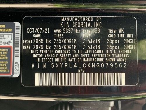 VIN (Vehicle Identification Number): 5XYRL4LCXNG079562