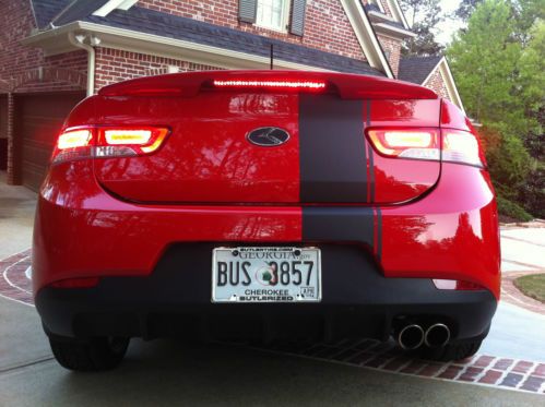 This car is in excellent condition. One owner. Never been smoked in. Only 16,300 miles. Custom wheels. Upgraded all audio speakers with amps and two 12 inch subs in trunk with separate bass control knob professionally installed by steering wheel. Sound system is unbelievable. New rear spoiler. Rally Stripe. Sunroof. Interior led lighting in cup holders and front storage area. Speakers lined with red LED lights. LED eyeliners in headlights. Upgraded horn. Tinted windows. Custom front grille. Replaced fog lamps and headlight lamps with HID's. LED taillights. Custom Korean 'K' badging. Wind deflector on sunroof. Leather red-stitched front seats. Heated front seats. Blue tooth enabled. Custom Stripe on trunk deck. Upgraded aluminum gas cap. Chrome covered gas and brake pedals. Tires replaced in 2013 and in excellent condition. This car is super clean, well cared for and very unique. Looks more expensive than it is. Have not seen another one like it.
