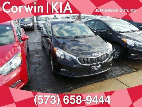 The peppy, economical, four-door Kia Forte has been redesigned for 2014! Its larger and roomier than the previous generation of Fortes, and boasts a new, sportier exterior. As with all Kia models, the 2014 Forte packs a lot of bang for your buck. The quieter engine and refined suspension mean a pleasant ride that feels like a larger, more expensive car. You can choose either the six-speed manual transmission, only available in the LX trim, or the six-speed automatic with overdrive that is standard in the EX and an option in the LX. Depending on your choice of trim, youll enjoy fuel economy ranging from an EPA estimated 24 MPG in the city, to 37 MPG on the highway. The trunk is generously-sized, larger than most compact vehicles, meaning you can fit all your gear, from groceries to golf clubs. Standard equipment includes steering wheel mounted audio controls, electronic stability control, and heated door mirrors. For added style, consider the available Premium Package, with items such as leather seat trim, power sunroof, push button start, ventilated driver's seat and heated steering wheel. The Forte is also offered as a five-door hatchback, and the sporty two-door Forte Koup, each having its own unique specifications, capabilities, and package specifics. Located in Jefferson City, MO we are your Mid Missouri KIA dealer with easy access from Columbia and Lake of the Ozarks. We have a terrific selection of vehicles that we sell the Corwin way: No pressure and full disclosure! Should your vehicle need service, we offer a shuttle service, free wireless internet and a child play area! Come see why we're different from the rest and get behind the wheel!