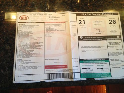Loaded up with the Premium Package, Navigation, Panoramic Sunroof, Dual-Zone Auto Climate Control, BlueTooth Hands-Free Phone and Streaming Audio, Premium Sound System with very cool Sub Woofer, Power Leather, Air-Cooled Driver's Seat, LED running lights, Keyless Entry with Push Button Start, Heated Outside Mirrors with Integrated Turn Signal, Auto-Dimming Rear View Mirror with Homelink, Upgraded Center Gauge Cluster, Cruise Control, Dual Chrome Exhaust, Back-Up Camera, Back-Up Warning System, Lighting Package (ambient lighting with different color settings). Cargo Cover, Net, Mat and Plastic Cargo Liner. Fully transferable warranty for 10 Years/100,000 Miles. The mpg hovers about 26-27 around town on regular gas. On highway trips I'm able to get up to 34 mpg. This auction may be terminated if vehicle sold before end of auction -- vehicle is for sale locally. If you'd like to see specific photos just let me know. Thanks for looking! |