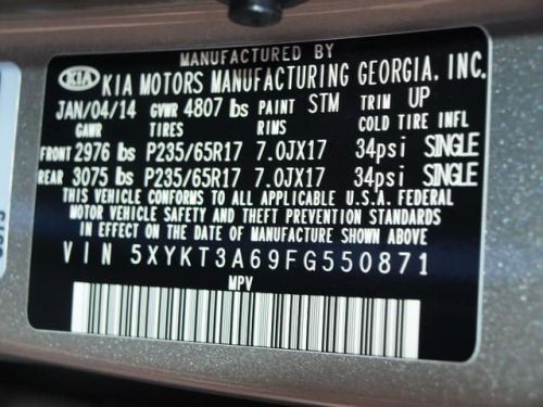 VIN (Vehicle Identification Number): 5XYKT3A69FG550871
