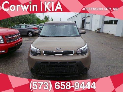 Totally transformed, the 2014 Kia Soul is more fun to drive, has moreadvanced technology, and more surprises. It looks different because it is different. With its unique styling inside and out and impressive features it's a new way to roll. Think of the Soul as your personal canvas. It's ready for custom touches. Unique colors inside and out for you to choose from. Plenty of optional accessories, like aluminum sill plates for the doors, all-weather floormats and bumper applique. For the finishing touch, a sunshade with the name Soul on it. Soul ! models have distinctive front LED accent lights and LED taillights to stand apart from the rest. Jump into the Soul and you can take on the road with confidence. Enjoy the strong performance of Soul's 130-hp 1.6L engine or Soul + and ! models' 164-hp 2.0L engine and 6-speed automatic transmission. Manual transmission is also available on Soul and Soul +. An available Eco Package on Soul+ includes Idle Stop & Go. It automatically turns off the engine when you come to a complete stop and then seamlessly restarts the engine when you release the brake pedal. Inside you will experience tons of standard features including 60/40 split-folding rear seats and Bluetooth. Available features include sunroof, push-button start with smart key, pulsating speaker lights, heated front seats, power-folding mirrors, voice-command navigation system, automatic climate control, rear-camera display, USB/aux for your MP3s, an accessory cable that lets you control your iPod, and UVO infotainment system which lets you use your compatible cell phone to make hands-free calls, receive and respond to text messages, listen to streaming audio, enjoy your personal music, and play your favorite song, artist or genre of music all by giving a single voice command. Located in Jefferson City, MO we are your Mid Missouri KIA dealer with easy access from Columbia and Lake of the Ozarks. We have a terrific selection of vehicles that we sell the Corwin way: No pressure and full disclosure! Should your vehicle need service, we offer a shuttle service, free wireless internet and a child play area! Come see why we're different from the rest and get behind the wheel!