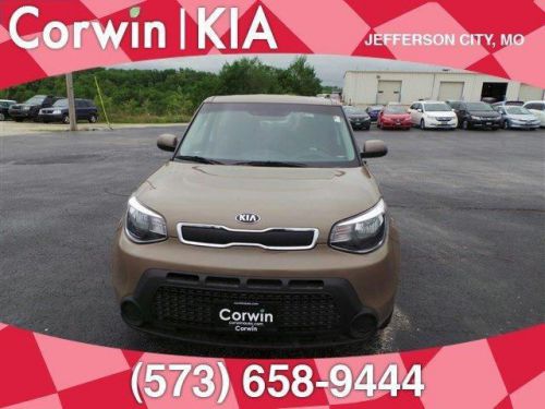 Totally transformed, the 2014 Kia Soul is more fun to drive, has moreadvanced technology, and more surprises. It looks different because it is different. With its unique styling inside and out and impressive features it's a new way to roll. Think of the Soul as your personal canvas. It's ready for custom touches. Unique colors inside and out for you to choose from. Plenty of optional accessories, like aluminum sill plates for the doors, all-weather floormats and bumper applique. For the finishing touch, a sunshade with the name Soul on it. Soul ! models have distinctive front LED accent lights and LED taillights to stand apart from the rest. Jump into the Soul and you can take on the road with confidence. Enjoy the strong performance of Soul's 130-hp 1.6L engine or Soul + and ! models' 164-hp 2.0L engine and 6-speed automatic transmission. Manual transmission is also available on Soul and Soul +. An available Eco Package on Soul+ includes Idle Stop & Go. It automatically turns off the engine when you come to a complete stop and then seamlessly restarts the engine when you release the brake pedal. Inside you will experience tons of standard features including 60/40 split-folding rear seats and Bluetooth. Available features include sunroof, push-button start with smart key, pulsating speaker lights, heated front seats, power-folding mirrors, voice-command navigation system, automatic climate control, rear-camera display, USB/aux for your MP3s, an accessory cable that lets you control your iPod, and UVO infotainment system which lets you use your compatible cell phone to make hands-free calls, receive and respond to text messages, listen to streaming audio, enjoy your personal music, and play your favorite song, artist or genre of music all by giving a single voice command. Located in Jefferson City, MO we are your Mid Missouri KIA dealer with easy access from Columbia and Lake of the Ozarks. We have a terrific selection of vehicles that we sell the Corwin way: No pressure and full disclosure! Should your vehicle need service, we offer a shuttle service, free wireless internet and a child play area! Come see why we're different from the rest and get behind the wheel!