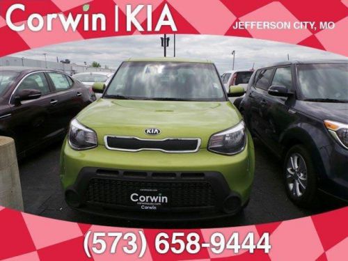 Totally transformed, the 2014 Kia Soul is more fun to drive, has moreadvanced technology, and more surprises. It looks different because it is different. With its unique styling inside and out and impressive features it's a new way to roll. Think of the Soul as your personal canvas. It's ready for custom touches. Unique colors inside and out for you to choose from. Plenty of optional accessories, like aluminum sill plates for the doors, all-weather floormats and bumper applique. For the finishing touch, a sunshade with the name Soul on it. Soul ! models have distinctive front LED accent lights and LED taillights to stand apart from the rest. Jump into the Soul and you can take on the road with confidence. Enjoy the strong performance of Soul's 130-hp 1.6L engine or Soul + and ! models' 164-hp 2.0L engine and 6-speed automatic transmission. Manual transmission is also available on Soul and Soul +. An available Eco Package on Soul+ includes Idle Stop & Go. It automatically turns off the engine when you come to a complete stop and then seamlessly restarts the engine when you release the brake pedal. Inside you will experience tons of standard features including 60/40 split-folding rear seats and Bluetooth. Available features include sunroof, push-button start with smart key, pulsating speaker lights, heated front seats, power-folding mirrors, voice-command navigation system, automatic climate control, rear-camera display, USB/aux for your MP3s, an accessory cable that lets you control your iPod, and UVO infotainment system which lets you use your compatible cell phone to make hands-free calls, receive and respond to text messages, listen to streaming audio, enjoy your personal music, and play your favorite song, artist or genre of music all by giving a single voice command. Located in Jefferson City, MO we are your Mid Missouri KIA dealer with easy access from Columbia and Lake of the Ozarks. We have a terrific selection of vehicles that we sell the Corwin way: No pressure and full disclosure! Should your vehicle need service, we offer a shuttle service, free wireless internet and a child play area! Come see why we're different from the rest and get behind the wheel!