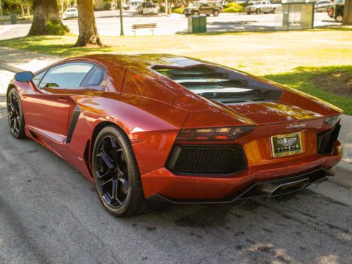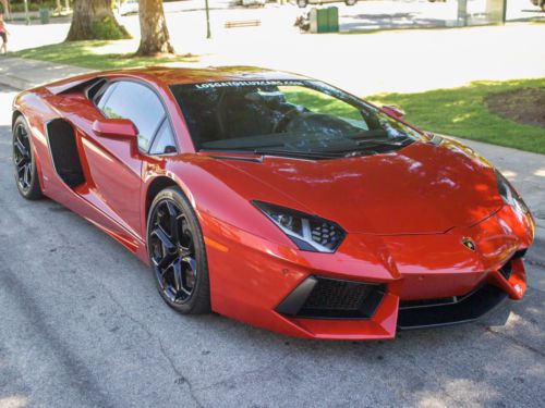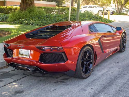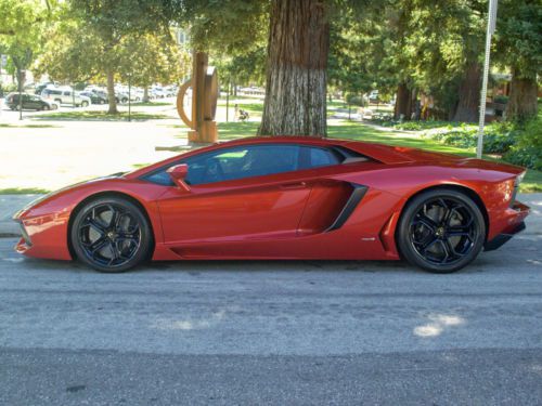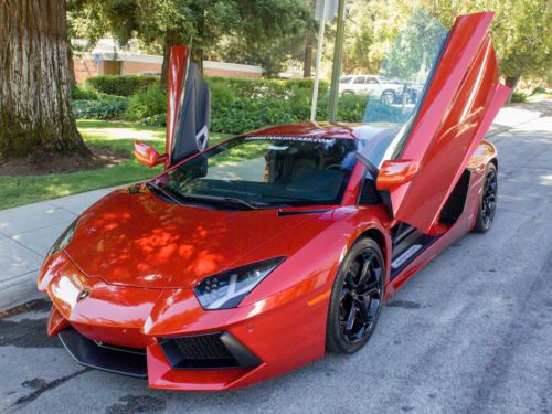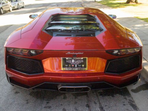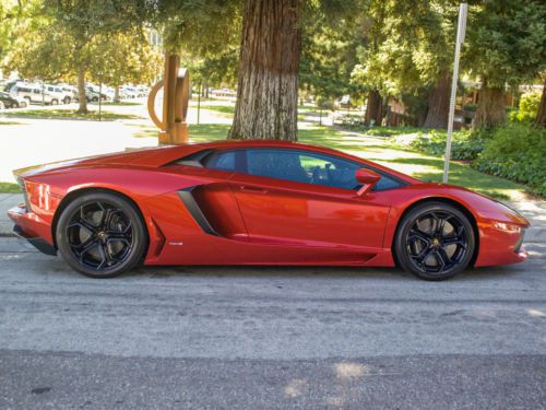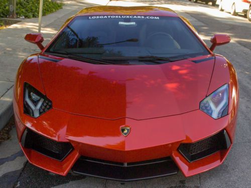 Lamborghini Los Gatos is pleased to present this stunning 2014 Aventador LP700-4 Coupe. Finished in a flawless and extremely rare Rosso Efesto exterior over beautiful Nero hides and stitched in contrasting Rosso Centaurus, this 700 horsepower bull is fully equipped and in showroom new condition. Cost options are vast and include Rosso Efesto Paint, Transparent Engine Bonnet, High Gloss Black Imperione Wheels, Carbon Fiber Engine Cover, Lamborghini "Sensonum" Premium Sound System, Multifunction Steering Wheel with Perforated Leather Inserts, Electric and Heated Seats, Branding Package, Black Calipers and Suspension, HomeLink with Parking Assist including Sensors and Backup Camera. Do not hesitate as this Aventador will not last long. Call a Lamborghini sales specialist today at 888-644-5155 and secure this beautiful Rosso Efesto Aventador while you still can...