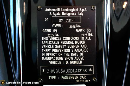 Lamborghini Newport Beach is proud to present this used 2013 Gallardo LP 560-4 Coupe that comes in Nero Noctis with Nero Perseus interior. This vehicle features Navigation system with rear-view camera, Brake Calipers in Red, Travel package, Electric Package, Electric/Heated/Memory seats, Branding package, all books, car cover + two keys. If you're interested in this vehicle please do not hesitate to call us today, we have trained professionals on the showroom floors at all times ready for your calls! We will always consider trade in vehicles and special financing is always available. We also offer very competitive lease programs on new and pre-owned models, we look forward to hearing from you today.