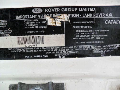 THIS IS A VERY NICE LAND ROVER IT ONLY HAS LITTLE UNDER 107,000 MILES,,I WAS TOLD IT MAY NEED A WATER PUMP,THE CERPTINE BELT BROKE ,BUT DID NOT RUN HOT, ALSO THE IGNITION KEY IS VERY HARD TO REMOVE VEHICLE STILL STARTS AND DRIVES AND IS EXCEPTIONALLY CLEAN ,I DO NOT HAVE TITLE ,ALL I HAVE IS A (BILL OF SALE)FROM PREVIOUS OWNER WITH COPY OF HIS DRIVER LICENSE I WILL PROVIDE A (BILL OF SALE )TO NEW OWNER OR YOU MAY FILE FOR A LOST TITLE, THIS VEHICLE IS PRICE CHEAP DO TO ABOVE MENTIONED" SOLD AS IS " I WAS TOLD BY LOCALLY DEALER A NEW PUMP AND BELT IS AROUND $400-500, TIRES ARE GOOD, A/C BLOWS COLD UNTIL BELT BROKE GOT ANOTHER VEHICLE AND DONT WANT INVEST THE MONEY