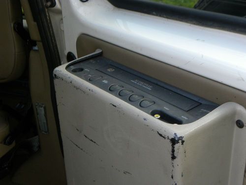 This Land Rover Discover runs fine and still has the same amount of power, but the engine makes a loud noise from what is believed to be a blown Head Gasket. It would be an excellent vehicle for parts. The tires are in great condition. This vehicle has a working VHS deck and DVD player w/remote. It Sirius Satellite Radio ready and has a Sirius radio installed although the cd portion does not work. It has a broken headlight and dent on the driver's side fender due to collision with a deer. It has a cracked windshield. The power steering reservoir has a leak and a bushing is needed for the motor mount. It comes equipped with a brush bar/crash bar in the front and a ladder in the back, both which would require painting or touch up. There is a step in the back for small children to enter the back where there are two jump seats. There is a custom speaker box in the back with a Rockford Amp that is totally unobtrusive and sits just in front of the jump seats. So the radio/dvd/vhs has quality sound. Back sunroof leaks and likely needs a new seal.