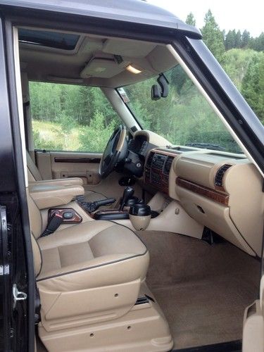 This Land Rover Discovery Series II SE is a gem. It has lived in the salt-free Rocky Mountains all it's life. It is in exceptionally good shape, with few signs of wear and tear. This unique SUV has great styling, unlike anything else on the road. Just sitting in it creates a feeling of safety, security and luxury. The engine starts and runs smoothly, with plenty of power and acceleration from the powerful V-8, 188 horsepower, 250 foot pounds of torque 4 liter engine. The interior is very clean, smoke free and very comfortable to travel in. It's safe and secure in all kinds of road conditions. Both front and rear passengers sit up high for a great view, with plenty of leg and head room for even very large folks, and dual sunroofs to bring the outdoors inside with you. The Harman-Kardon 300 watt sound system gives clean crisp sound from the radio, CD, or cassette systems. The low mileage of only 114,734 indicates that this eleven year old SUV has only been driven an average of less than 900 miles per month, and it's great paint job testifies that it has been in a garage for most of it's life.