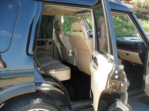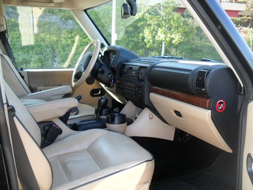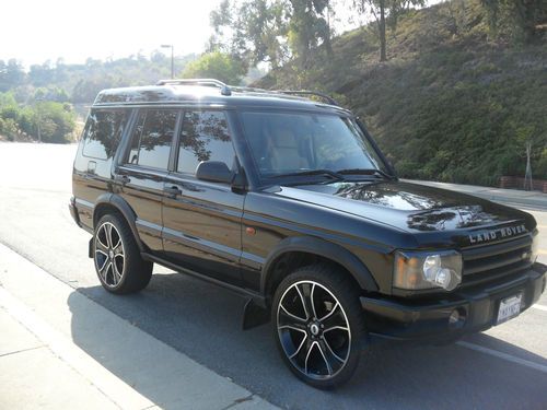2003 Land Rover Discovery 4x4 with 120K Miles on the odometer. It has a New used Engine with only 30K on it, with 2 new Cat Converters. It's Black with some slight scratches here and there, with light Tan Leather Seats with Black carpet. It runs Good and Strong. Power everything, multi CD Player, New 22" Black Gloss Range Rover Rims and Tires with Land Rover Air Valve Steam Caps. Land Rover Tow Hitch Cover, Land Rover Liceses Plate Frames, Land Rover Spare Tire Cover, also I have all 4 of the Stock Rims and Tires that are in good Condition, Will be sold with Vehicle if wanted, for no extra cost. I get alot of complements on this SUV all the time, I hate to sell it but I need something smaller now. Clean Title in Hand. Smoke and Pet free Vehicle. I am the 2nd Owner, purchaed in California. Vehicle can be shipped at buyer cost, or picked up in person. Cash in Hand. Thank You for looking, Happy Bidding
