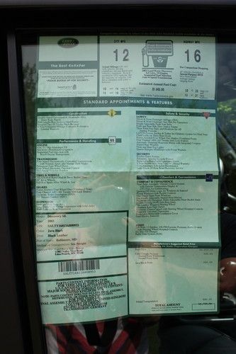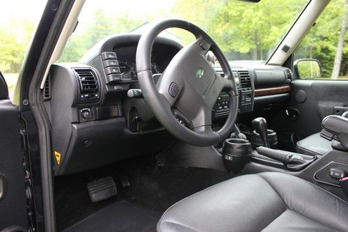 Up for bid is a 2003 Land Rover Discovery SE. It is the cleanest, nicest used Land Rover that I have ever seen. It looks brand new. It is a one owner vehicle that was strictly used in the summer. There is 34,935 miles. I figure they put on about 3,000 miles a year. It has the typical Disco dual sunroofs, dual a/c, heated seats, 6 disc CD player (changer still in box in glove compartment,) Cassette, spare tire with factory cover. Interior is spotless, exterior is spotless. It's beautiful! Auto transmission with manual options. Towing package. Factory grill guard in front and 4 tail lamp guards in back. Original Title, Carfax, has Manual and binder (excellent condition too)
