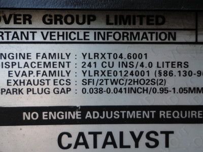 Engine:4.0L 3950CC V8 GAS OHV Naturally Aspirated