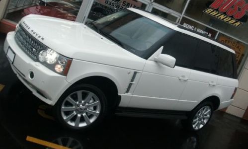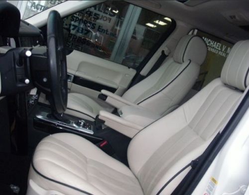 This 400 Horsepower Range Rover is being offered in the most coveted color combination, Chawton White Exterior with Ivory interior, black piping and black piano wood trim. This Range Rover also has the factory rear entertainment system with DVD player, navigation system, heated and A/C seats, 20" wheels, Brembo brakes...FULLY LOADED! , This Range Rover drives 100%. I had custom paintwork done to color match the mirrors, side vents, lower front and rear valance, hood vent and brake calipers to the exterior color of the truck. The Interior of this Rover is in beautiful condition (pet and smoke free) , and the exterior has no dents or scratches. Just had a full service at Landrover Amherst (Buffalo NY) new factory compressor just installed. Everything on the vehicle (brakes - tires etc..) all rated at VG (very good condition) I love this car but need to get something smaller because I moved and my new garage is too small to fit this. I listed all information below regarding equipment. This car has every option possible! EXTERIOR * Variable rain-sensing intermittent front windshield wipers * Bi-Xenon single-piece headlamps w/auto headlamps, pwr washers * Front/rear fog lamps * Adaptive front lighting system (AFS) * Intermittent rear window washer/wiper * Pwr folding heated mirrors * Pwr sunroof-inc: deep-tinted glass, retained accessory pwr, one-touch open/close, anti-trap feature * Laminated exterior glass panels * Silver on black Land Rover ovals & "Supercharged" exterior badge * Diamond mesh front grille & pwr vents * Split tailgate * Deep-tinted glass aft of B-pillar * Clear tail lamps-inc: turn signal & brake lamp