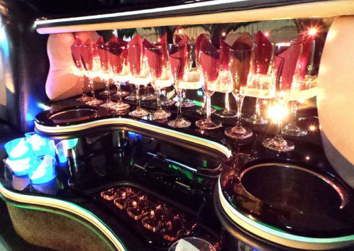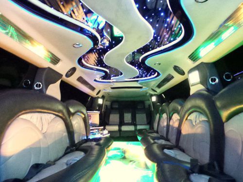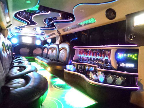 Classic Black 17 passenger limo Custom design stainless steel ceiling entire length of the vehicle stainless bar with fiber optic and neon lighting Only vehicle in the area with flash twinkles special LED lights in partition IPOD connections DVD/CD player wet bars area room for soda bottled water, ice and more. 3-toned leather seating Air Conditioner Flat screen TV's glassware and napkins |