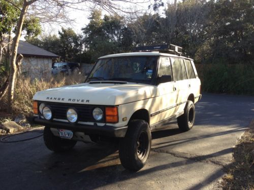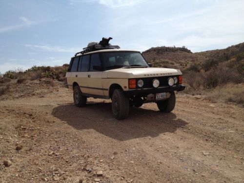 1995 Range Rover Classic LWB. In good shape. This vehicle is the last year they made it as a truck with soft dash, not a luxury SUV. Great truck, 4x4 is awesome and works as good as my jeeps. Very torn about selling it but i have another project in the shop and need to focus. Lots of work on this vehicle and aftermarket equipment. Engine and exhaust: 4.2L runs great, recently changed distributor, plugs and wires, brokedown cylinders and cleaned all fuel injectors about 3 months ago, oil changed regularly, very clean and smooth. Transmission pick up screen changed and all fluids changed about 3 000 miles ago. Shifts as it supposed to. Transfer case is fine and shifts as its supposed to but you rarely need the low range with such a strong engine. Absolutely no leaks anywhere under the vehicle. Starter is new about 7 months. Alternator brand new. Electrical harness replaced. EFI ECU replaced. Brakes: also in great shape, pads at 65%, electronic module, accumulator working fine, brakes were bled and refilled about 4 months ago. Suspension and wheels: No air shocks. Converted to old man Emu 2 inch lift kit and Emu shocks. Added the custom wheels and trail tires that have about 6,000 miles on them, great shape and handling Electrical: good. has some quirks. the heated seats are not heating up, i think its a fuseor the heat pad. Electric seats, windows, locks all work fine. Rear view side mirrors do not adjust electronically, again either a fuse or the seat memory ECU. Sunroof currently not sliding. Interior: As you can see from pictures super clean. Leather is showing some age, no tears or rips but does have some areas that are worn out and thinning on drivers seat mostly. Carpets no stains, headliner no stains Exterior: Good shape absolutely no rust anywhere. all seals are fine, lift gate and tail gate fine no rust or leaks. paint has some fading if you look closely, there are some scratches that don't seem to come out well in the pics, but they are there. Couple of chips here and there, but really in good shape for the years. All lights. marker lights, blinkers and so forth are working fine. Sound System: Pioneer aftermarket stereo, kicker 6.5s in doors and 3s in back of headliner, single CD and AUX player plus radio. The amplifier and range rover cd changer are no longer in there. They were not working. I ve done the majority of the work myself on this vehicle and should be able to answer any questions. Contact me. |