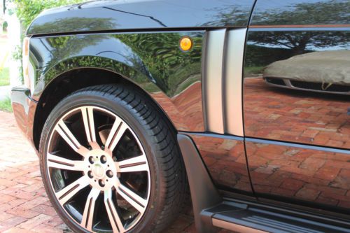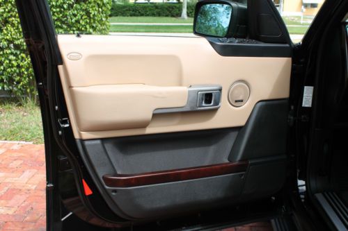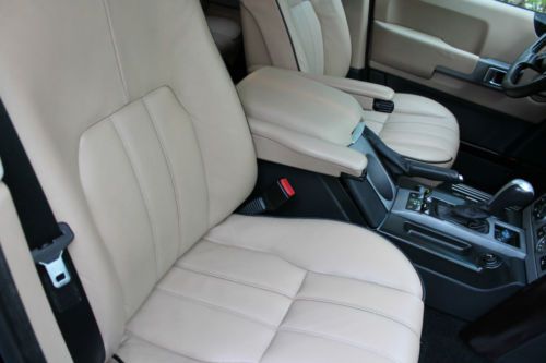 Welcome to a fantastic opportunity. You are viewing a gorgeous "Go-anywhere, Do-anything" and "Look good while doing it" exclusively Southern-kept and driven 2005 Land Rover Range Rover HSE Luxury All-Wheel Drive SUV. This Range Rover has it all! Although it is a premium HSE model, with upgrades, it looks exactly like a Supercharged model. Wheels, badging....etc. Striking good looks, unparalleled performance and extreme luxury. This is Land Rover's flagship model when new in 2005, and had an original price tag of $81,550....its no wonder why. This HSE is sexy, sleek, extra-clean and rides and drives like no other SUV on the road. The Best 4x4xFar! Certainly the best color combination. High-Gloss Java Black exterior compliments the Sand Beige leather interior nicely (with complimenting Black piping), and this Range Rover HSE has all the bells and whistles. Everything! Look at the rich interior refinements....This SUV screams Luxury! It has the Luxury Package ($1,400 option) and both the exterior and interior are in excellent condition. This world-class SUV is super-clean, as well as super-attractive. It also has the Cold Weather Package for those of you in not so fair-weather climates, and Integrated Ski bag. This AWD SUV is ready for anything that you can throw at it. From the slopes, to the trails or simply to the front Valet Spot at your favorite Country Club. This is a great looking and driving SUV! Free of any dents or parking lot door dings, the factory finish is brilliant. High-gloss Black finish looks magnificent on this RR and it is just the perfect canvas for this color. Combined with the Ultra-high dollar 22-inch Range Rover Supercharged wheels, (with BRAND NEW RADIALS: size 285/35R22), this Range Rover will grab your attention. They are brand new with less than 75 miles on them, and they ride incredible, and they offer and impressive footprint as well! Massive wheels, with great ride control. The interior is extra-clean as well, free of any rips or tear and this vehicle was owned by a non-smoker. The carpets even still look new. Remember, this RR has remained in sunny and warm weather since new, and it certainly shows. Tinted windows round out this sleek look and have kept the rich, luxurious interior cool and free from the sun's harmful rays. This one get looks and stares everywhere because of its condition, as well as Premium Upgrades-- and is an absolute pleasure to drive. This isn't your average 2005 Range Rover! Additionally, it has the dealer-installed Appearance Package, consisting of both front and rear mud and rock guards, as well as full length running boards. In addition, it has factory Navigation, as well as every other premium feature that Land Rover offered. Including 570-watt, 15-speaker Harman Kardonn LOGIC7 Surround Sound, 6-disc CD changer, Steering Wheel Mounted Controls, Triple Zone CFC-free Climate Control, Power Tilt and Telescopic leather-wrapped steering wheel, dual power seats with 3-position memory, power glass sunroof (with one-touch feature), Power and Heated mirrors with Power-fold feature, Puddle Lamps in door mirrors, Heated front AND rear windshield, Eight Airbag Supplemental Restraint System, Bi-Xenon Headlights with Power Washers, Parking Distance Control both front and rear, keyless remote entry, factory security system and so, so, so, much more.....AND headrest-mounted TV monitors for the DVD. This was the model (and the color) that you saw sitting on the Showroom floor when you went to your local Land Rover dealership, at least the more prominent ones! Standing tall with all the options, adjustable height suspension and 22-inch Supercharged Aluminum/Alloy wheels... This AWD SUV looks Awesome!!! Completely loaded with full power options, and safety features, it also has Adjustable Ride Control, Automatic Load Leveling, All-Terrain Dynamic Stability Control (DSC), Hill Decent Control (HDC), and 4-wheel Ventilated Disc Brakes. It runs and drives superbly. This HSE Range Rover has enormous power from its 300 horsepower 32 valve Aluminum Alloy 4.4 liter powerplant and 5-speed electronically-controlled automatic transmission. Shifts nice and smooth and this Luxury SUV has tons of torque. This RR accelerates like a Jet airplane and drives just as smoothly. The Land Rover Range Rover is the benchmark all other SUVs strive to meet. With exceptional power, towing and handling (and Yes, this RR also has the factory option Towing Package--perfect for your boat or jet ski), this SUV can handle anything thrown at it (and it does not appear to have ever been used). Outstanding craftsmanship and artisanal refinements abound with this 4.4 Range Rover HSE. With only 109,000 original fair-weather miles, it is just getting broken in. That's less than 11,000 miles per year folks--and remember, these were dealer serviced and maintained miles, and Southern miles. Believe me, it makes a BIG difference!.....No harsh winters, no harsh roads, no salt, no snow, blah, blah, blah.....you should be getting the picture, this is a nice, nice truck. Everything works properly, from its ice cold air conditioning to the heated seats to keep your fanny warm, all the windows and locks, and sunroof, etc and we have just serviced this vehicle and she is ready for a loving new owner. We are offering it to our eBay clientele on auction for 7 days with No Reserve....that's right, one savvy and lucky bidder will be getting an extraordinary Luxury All-wheel Drive SUV! This is a True Auction, and I am sure interest will be high on this well-kept beauty with all these upgrades...so let the bidding begin! No disappointments here. Did we mention only 109,000 original, fair-weather miles and $10,000 worth of upgrades on top of the $81,000 original sticker price? The undercarriage and motor compartment are just as clean as the exterior and interior. No salt, no snow, no rust, no rot, no potholes, no rolling hills....Aside from the obvious benefits, both your suspension and transmission will 