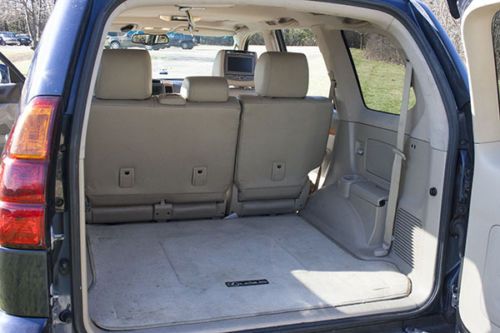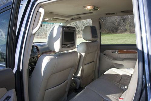 This 2005 Lexus GX 470 is Fully Loaded. The exterior is dark blue and beige interior. It comes with the Preferred Accessory Package which includes navigation, Mark Levinson premium audio system, back up camera, blue tooth, wood trim interior with memory for drivers' seat, steering wheel and outside mirrors, third row seat with rear air conditioner, rain sensing wipers, power tilt/telescopic steering wheel with audio controls, heated outside mirrors, dual zone automatic climate control, roof rails and cross bars and rear spoiler. All new Tires installed last year. 2-Additional in headrest DVD players for backseat viewing. You also get 4 pairs of wireless headphones. I do have the 3rd row seating but it is not shown in the pictures below. Towing Pkg. Excellent Condition priced for a QUICK SALE! .