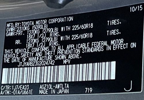 VIN (Vehicle Identification Number): JTJYARBZ3G2024742