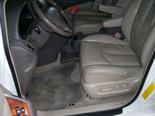 New tires, recent water pump, timing belt, brakes, and transmission service all documented with receipts and Car Fax. We bought this Lexus SUV last fall to have an all wheel drive vehicle for the winter. We installed new tires which now have less than 2,500 miles and still show 100% tread. This is our first Lexus and first SUV. It has been such a good vehicle we have decided to buy a new Lexus RX series. The RX Lexus has been reported to be the best selling SUV, and now that we have owned one and have seen how good the All Wheel Drive system got us through some very bad weather this winter, we understand why. Unit has the optional paint package, the Premium package and the limited packages. This is an AWD (All Wheel Drive) unit. It has all options except Navigation. Includes a 6 disk CD as well as a cassette, memory drivers seat for two drivers, Home Link door opener for three garage doors, power sunroof, power leather heated seats, power steering, power brakes and power mirrors. It has ABS brakes and a transmission selection for snow, power or economy. It has intermittent wipers front and back, automatic temperature control, Air Conditioning, Automatic headlights, fog lights, two pull out storage areas in the center console, several cup holders and a sunglass holder. The heated seats and everything else works as they should. No check engine light, warning lights, engine noises or power train issues. Interior is in good shape with the optional Lexus floor mats in front, rear and the cargo area. The only drawback is the drivers seat is showing wear on the side and there are small nicks in the cladding. Fuel mileage is currently at 18.0 which is all in town driving. Unit is very clean, smooth, and a pleasure to drive. No chips or broken glass. Factory privacy glass on rear windows. After we bought this Lexus, we installed new tires, new lift gate struts and new headlight housings as they were showing some hazing. We retained the original headlights and housings, which will be given to new owner. Inspections are most welcomed and encouraged. |