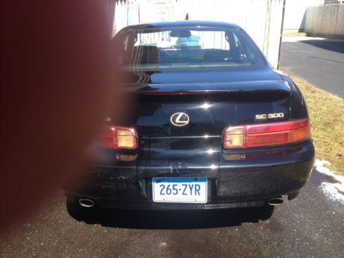 BEFORE WE BEGIN I KNOW YOU SEE MY EBAY SCORE IS LOW. JUST KNOW THAT I HAVE BEEN SELLING CARS FOR OVER 15YEARS, MY EBAY SCORE USED TO 350 100% IF YOU GOOGLE MY NAME, CHRIS HATZIKOSTAS IN BRIDGEPORT CT YOU WILL SEE 2 FULL PAGES OF MY EBAY LISTS AND MY CARS I STRIVE ON HONESTY AND I AM A FIRM BELIEVER OF KARMA. AS IN WHAT YOU GIVE IS WHAT YOU RECIEVE SO HAVE FULL CONFIDENCE IN ME AND THIS CAR. I ALSO CURRENTLY WORK AT A MAJOR SUBARU DEALERSHIP IN THE AREA. SO IF YOU WANT TO TALK TO ME YOU CAN EMAIL ME AND I WILL GIVE YOU MY NUMBER TO THE DEALERSHIP OK YOU ARE BIDDING ON A 99 SC300 BLACK ON BLACK. GREAT CAR MOTOR IS GREAT SOUNDS AND PERFORMS LIKE NEW SMOOTH QUIET AND POWERFUL. DOES NOT TICK OR TOCK SMOOTH QUIET AND POWERFUL 9-10 TRANSMISSION GOES THROUGH ALL THE GEARS EXCELLENT. NO SLIPS GREAT 9!-10 TIRES ARE LIKE NEW SUSPENSION IS GREAT FEELS LIKE A LUXURY CAR SHOULD STEERING IS GREAT POWER WINDOWS ALL WORK UNDERCARRIAGE IS VERY CLEAN INTERIOR OF THE CAR IS GREAT. LOOKS LIKE NEW. BODY IS EXCELLENT!! 9!! PAINT IS GREAT NO PAINT WORK LOOKS EXCELLENT! GUYS ALL IN ALL THE CAR IS BARELY BROKEN IN. CAR LOOKS AND PERFORMS GREAT. THERE ARE NO STORIES. PLEASE EXPECT A LITTLE WEAR AND TEAR JUST LIKE A AGED CAR. CAR IS GREAT. GUYS REALLY THIS CAR IS AS NICE AS YOU ARE GOING TO FIND A 99!! ALL AROUND 9!! PLEASE REMEMBER I DO THIS FOR A LIVING AGAIN PLEASE GOOGLE MY NAME IS YOU ARTE WEARY PLEASE SHOP AROUND AND SEE WHAT THESE CARS GO FOR!!\ GUYS ANYBODY WANTS MORE PICS I WILL SEND OVER ON MY PHONE OR EMAIL YOU. I KNOW THE PICS ARE NOT THE BEST. THE NEW OWNER WILL BE PLEASED!!! ONE LAST THING I JUST WASHED THE CAR IN THE PICS SO PLEASE IF YOU SEE ANY IMPERFECTIONS THATS THE WATER OR REFLECTIONS IT LOOKS GREAT!!
