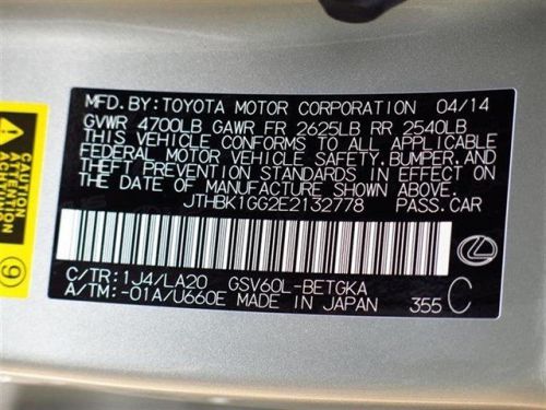 VIN (Vehicle Identification Number): JTHBK1GG2E2132778