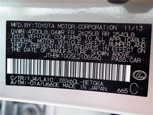 VIN (Vehicle Identification Number): JTHBK1GG5E2105560