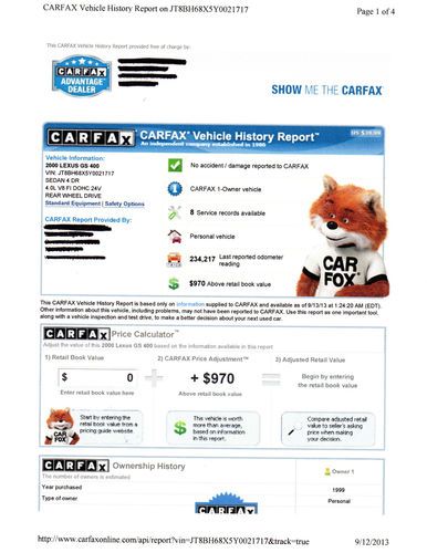 Sub Model: GS400 ONE OWNER - AUTOCHECK- CARFAX CERTIFIED