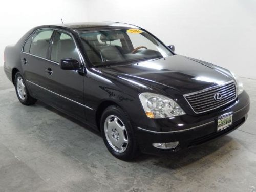 UP FOR SALE IS A 2002 LEXUS LS430, !!!!!!! WOOD GRAIN DASH, AND STEERING WHEEL!!!!!!!!! AUTOMATIC, DUAL CLIMATE CONTROL, ALLOY WHEELS, POWER LEATHER HEATED AND COOLED SEATS, AM/FM/CD PLAYER, POWER SUNROOF, POWER WINDOWS, POWER DOOR LOCKS, VERY CLEAN INSIDE AND OUT, RUNS AND DRIVES GREAT!! If you are looking for a luxurious sedan, we have the vehicle you want. This black Lexus has black leather interior and has all the bells and whistles. Stop by the dealership and test drive today. ***Internet special. Price reflects discount for cash buyers. Traditional and special financing is available for qualified buyers. Please contact us first for availability as our cars go fast at near wholesale prices. Prices are subject to change. Sales Tax, Title, License Fee, Registration Fee, Dealer Documentary Fee, Finance Charges, Emission Testing Fees and Compliance Fees are additional to the advertised price. All options and conditions of the vehicles must be verified with the dealer, any descriptions or options that are listed maybe incorrect due to automatic data transfer. Options Installed ABS Brakes,Air Conditioning,Alloy Wheels,AM/FM Radio,Automatic Headlights,Cargo Area Tiedowns,Cargo Net,Cassette Player,CD Changer,CD Player,Child Safety Door Locks,Cruise Control,Daytime Running Lights,Driver Airbag,Driver Multi-Adjustable Power Seat,Electrochromic Exterior Rearview Mirror,Electrochromic Interior Rearview Mirror,Electronic Brake Assistance,First Aid Kit,Fog Lights,Front Air Dam,Front Power Lumbar Support,Front Power Memory Seat,Front Side Airbag,Full Size Spare Tire,Genuine Wood Trim,Heated Exterior Mirror,High Intensity Discharge Headlights,Interval Wipers,Keyless Entry,Leather Seat,Leather Steering Wheel,Passenger Airbag,Passenger Multi-Adjustable Power Seat,Power Adjustable Exterior Mirror,Power Door Locks,Power Trunk Lid,Power Windows,Rain Sensing Wipers,Rear Window Defogger,Separate Driver/Front Passenger Climate Controls,Side Head Curtain Airbag,Steering Wheel Moun