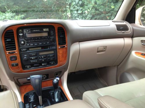 Beautiful Lexus LX470 with gold package (gold emblems) and Nakamichi 6-CD stereo system. 4-wheel drive that seats 8 comfortably. Truck comes loaded with tan leather interior, power seats/windows/locks/mirrors/antenna. Front and rear climate control. Sunroof/running boards/roof racks. Height adjusted for road conditions and garage entrances.
