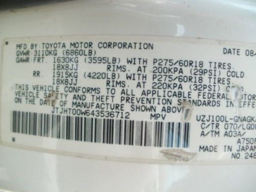 This is a 2004 Lexus LX 470 that I am listing for a friend. Owned for approximately 7 years and always seviced by Lexus. As you can see from the mileage this vehicle has been well utilized, to say the least. It has carried everything from young kids, to grandparents to plants and animals. Everything works, including a warning light or two ! The leather interior is fairly worn and stained in spots, as is the carpet. There are some boo-boos on the outside, as can be expected. All the tires are excellent. Even with 269,000 miles, I would not hesitate to drive it anywhere. Remember three things about this car--it has been thoroughly enjoyed by young kids, playful parents, and friendly pets !! THE PICTURES MAKE THE INTERIOR LOOK A LITTLE CLEANER THAN IT ACTUALLY IS