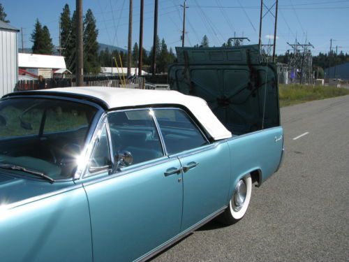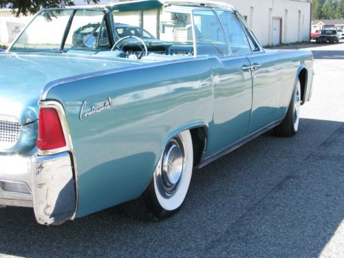 You are bidding on a beautiful 1961 Lincoln Continental convertible.This is a very rare car that has a newly rebuilt[less than 1000 miles] original 430 motor,almost new convertible top, and a 3yr. old base coat-clear coat paint job in as close to original color as we could find.The body and paint is super straight and is extremely shiny.The door panels were all redone in original patterns 2yrs. ago and the seats were redone a few yrs. ago and are in extremely good condition.This cars always starts right up and drives down the road like a Lincoln should.The transmission shifts like it should.It is a very comfortable cruising car.Now for the bad.As you can see in the pictures the top works,but sometimes you have to give it some help like pushing the trunk flap up or down or stopping and starting it again.There are some wear spots in the paint where the top sits on the car behind the back seat on both pass. + drivers side[no rust or anything] and a small surface crack in the paint about 1inch long[you hardly can notice] ,that a good painter could match and repaint easily[see last 2 pictures]. Three of the power windows work and 1 doesn't.All of the electrical work,lights,turn signals,wipers,heater etc.,except the clock.I see there is one on ebay that ended sunday for 67,000.00.Of course mine needs some work to be that nice,but I just am saying any money you put into this car you will get back out.I have owned the car[and have a clear title in my name] for over 10 yrs.and have driven it every summer and it is a very nice driver car that is all original, and everything is there if you want to make a show car out of it.I am looking to retire soon and am selling off my cars[including a 1959 Edsel convertible] and have priced this car as a driver quality car,but please don't ask the reserve as I am going to let the auction run its course.Please give me 24hrs. to return emails or call me on my cell[10am-7pm,PST] 1-208-664-0125,Thanks Harry.