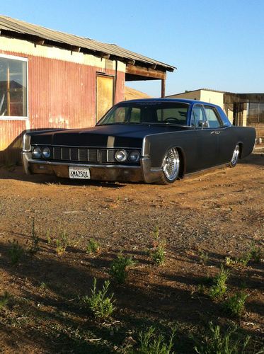 1967 Lincoln Continental suicide rear doors, flat black paint, metallic blue roof, custom pin striping. Professionally air bagged, lays on the ground, sits on 20" wire wheels. Cd player with IPod hook up, and new speakers. Alarm system with power door locks. All power windows are in great working condition. Motor is a 462 with automatic transmission, and power steering, and runs great. Interior is original and in decent shape for its age. This car is not an award winning show car but is definitely a cool family cruiser that turns heads everywhere it goes.