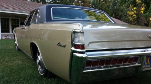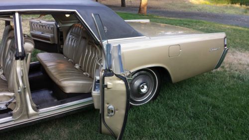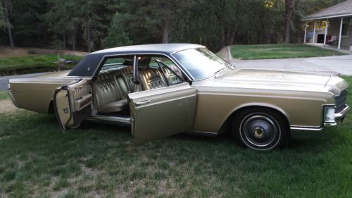 This is one nice 1969 Gold on Gold with Black vinyl top Lincoln Continental and one of the remaining cars that is a true survivor! With 49,000 original documented miles this car will do nothing but climb in value. These cars are growing in popularity based on their incredible lines and the fact that they have been seen on television and in the movies. Not to mention the suicide doors!! . We knew they had great lines and were incredible before, now the whole world knows it! This car nothing short of incredible to drive and enjoy. It is a large car with super cool suicide doors, take the whole family or friends in the super comfortable seats on a trip down memory lane or out for ice cream! This car was purchased from a gentleman in Oregon that garaged it and showered it with love. This car has original paint and interior which is excellent. The car has 49,341 original miles and is ready for 100,000 . It runs and drives great, no smoke, no shimmies, no leaks , and everything works, windows, 8 track power antenna etc. The car runs and drives nicely. The body is in very good condition underneath super clean. Please see the extensive pictures. The interior on the car is all leather and in pristine condition as is the dash, carpets, steering wheel and overall interior. This car is ready to enjoy and looks like new. You couldn't build this car for less. The prior individual took incredible care of this car, it was always garaged and is ready to drive. The Car is nicer than most new cars! The car starts immediately, runs nicely, idles nicely, shifts nicely, and the major systems function. With all cars that are 45 years old there are some minor issues, the air conditioning system works (needs a charge), The tires will need replacing as they are the tires put on brand new form Sears in 1976 with the mileage at 47,872 . Also the headrests are missing and I do not have them . It had a complete inspection two months ago and the mechanic was in shock at the condition of this car mechanically as well as over all untouched exterior and interior. It needs to have someone to appreciate the stock condition of this car i don't have the storage for the car or id keep it for myself. Dont let this timeless classic slip away ! Any questions please feel free to ask !