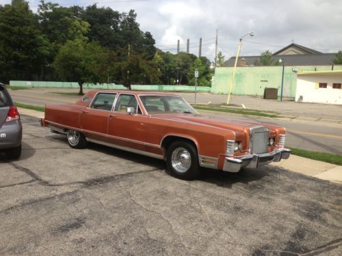 1977 Lincoln Continental town car. 4 door. copper color paint. tan leather interior. Car runs. has had a rebuilt transmission done in August. body is in good shape. older paint but still presentable. The battery is old and should be replaced. has new power steering pump & brake lines. there are some small cosmetic imperfections that could be addressed if desired. interior is in very nice shape. it was detailed before winter started. It is currently parked out side and is covered in snow. It will probably need a jump and starting fluid from sitting the last couple months. I would prefer this car to be inspected before you place bids on it. sold as is. serious bidders only. call Randy for any questions.(989)620-4246 |