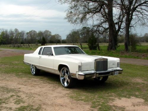 Up for bids is this 1977 Lincoln Town Coupe.. Very nice condition. 400 / auto. a/c has been converted over to 134a. Runs and Drives Great. Has SABO 26 inch Wheels. Turns alot of heads when going down the road. Interior is great. Leather seats. Has the original am/fm radio with a under dash system with big woofers in the trunk along with a amp. System sounds great. Has Flowmaster exhaust. I have all the original paper work, build sheet, brake stopping consumer report paper. Has all the Texas Registration Receipts since car was purchased new. Was purchased new at the local dealership here in East Texas less than a mile from where the car was kept. Garage kept. Also have receipts for tires, wipers, ect. These Town Coupes with the 400 engines are getting more and more harder to find. Most were 460 Big Block. Rat Rod? Ghetto? One thing about it. Its no Low Rider. Look at the pictures provided. email me with any questions. Thanks for looking. Payment is due in full within 10 days after the end of auction. Must be picked up within ten days also. Happy Motoring
