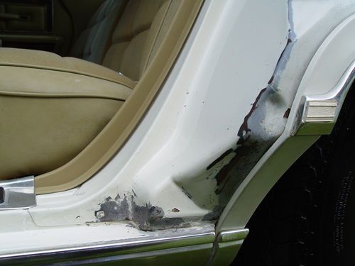 There is rust on the inside of the door that could be easily fixed by a body repair person. The car is very solid.