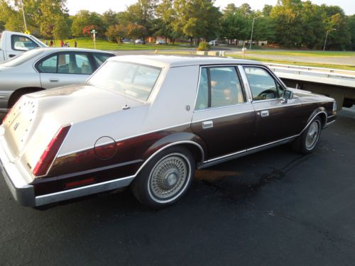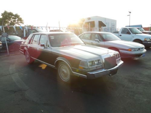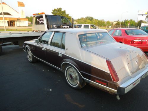 Up for auction is a 1986 Lincoln Continental. This is not a perfect car but it is a beautiful car. The interior could use help; some of the wood-grain trim pieces are peeling, the front seats have minor tears hear and there, the drivers-side armrest has a decent-size tear in it as well, the headliner & fabric covering the sun visors are completely gone. There are no major dents or any large rust areas on the body, the drivers-side front turn signal lens is missing, the passengers-side lower headlight lens is missing, and the "Continental" badge in front of the front passenger-side door is missing too.