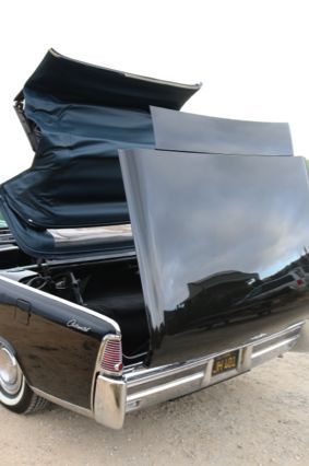 and repaired with new rubber inserts) NEW Carpet throughout entire cabin & Trunk with original Lincoln heel kick pad. NEW Trunk carpets cut to original specifications NEW door moldings (4) with extruded ends that snap in perfect to original holes like it was in 1965 2 Door seal front (with NEW molded ends) 2 Door sear rear (with NEW molded ends) NEW Weather-strip trunk lid NEW Peak molding clips for Fenders and Quarter panels NEW Rear deck molding NEW Package tray molding NEW Convertible top Quarter pads (These pads rest on the car when the top is up) NEW Steering gear box NEW Power steering pressure hose NEW Power steering fluid NEW Carburetor rebuilt NEW Fram oil filter