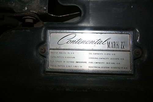 THANKS FOR LOOKING AT THIS WONDERFUL 1975 LINCOLN CONTINENTAL MARK FOUR WHICH IS A ONE OWNER CAR THAT HAS BEEN STORED INSIDE SINCE 1983. THE OWNERS WIFE SOLD THE CAR TO A COLLECTOR FRIEND OF MINE TWO YEARS AGO AFTER STORING IT IN HER GARAGE SINCE 1983!!! THIS WAS HER HUSBANDS CAR AND AFTER HE DIED IT WAS STORED UNTIL TWO YEARS AGO. I HAVE IT STORED INSIDE AND WILL HAVE IT DETAILED UP BEFORE DELIVERY--I DID DRIVE IT OVER 100 MILES AND HAD NO PROBLEMS--ALSO THE AIR CONDITIONING IS ICE COLD!!!!! I HAVE THE ORIGINAL TITLE SHOWING 3 MILES AT PURCHASE AND THE CAR IS SUPER NICE AND VERY STRAIGHT!! IT LOOKS LIKE THE TIRES ARE BRAND NEW BUT ARE TWO YEARS OLD. THIS CAR HAS JUST A LITTLE OVER 24401 ORIGINAL MILES AND HAS ALL NICE INTERIOR AND BRIGHT WORK. EVERYTHING IS VERY NICE AND CAN BE ENJOYED.