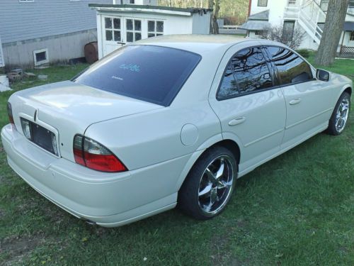 Paint Code: G4 Trim Code: 6S CUSTOM LINCOLN LS SPORT REAR WHEEL DRIVE 3.9L SOHC V8 ENGINE, 5 SPEED AUTOMATIC TRANS REMOTE KEYLESS ENTRY FULL POWER (WINDOWS LOCKS ECT) HEATED SEATS POWER SUNROOF REVERSE SENSORS (PARKING AID) MILES ARE 110100 MILES WILL NOT BE EXACT BECAUSE I DO DRIVE THIS CAR 19 INCH CHROME STERN YOSHI WHEELS WITH NICE 235-35-19 DIAMONDBACK TIRES. AND FULL SET OF STOCK WHEELS WITH VERY NICE 235-50-17 MICHELIN ENERGY SAVER TIRES PLEASE NOTE I HAVE PICTURES OF THE CAR SHOWING BOTH SETS OF WHEELS. GRAY LEATHER INTERIOR, AM-FM 6 DISC RADIO THE PICTURES DOES IT NO JUSTICE.... YOU REALLY NEED TO SEE THIS CAR IN PERSON. I HAVE PENNSYLVANIA TITLE(BRANDED "R") IN MY NAME. I PERSONALLY RECONSTRUCTED THIS CAR FOR MY OWN USE. PRIOR DAMAGE WAS TO THE FRONT. ONLY THING REPLACE WAS THE HOOD AND RIGHT HEADLIGHT. THE DAMAGE WAS VERY MINOR. IT IS GOING TO BE CRUSHING TO SEE THIS GO... DUE TO STATE LAWS. THIS WILL NOT HAVE THE DARK TINT ON THE FRONT DOOR GLASSES. THE TINT WILL BE REMOVED. NO EXCEPTIONS..... THE BACK GLASS AND REAR DOOR GLASS WILL REMAIN TINTED IF YOU HAVE ANY QUESTIONS ABOUT THIS CAR PLEASE CONTACT ME. THIS CAR WAS BUILT ABOUT A YEAR AGO... PAINT DOES SHOW SOME VERY LIGHT SIGNS OF WEAR AND AGE (SCRATCHES AND DINGS) LOWER BUMPER COVER HAS SOME CRACKS AND SCRATCHES (DAM PARKING BLOCKS....) 19 INCH RIMS DO HAVE SOME CHROME PEEL AND CORROSION, ONE 19 INCH WHEEL WAS REPAIR AND HAS CHROME BLEMISHES. INTERIOR SHOWS SMALL SIGNS OF WEAR (LEATHER WEAR AND NORMAL WEAR MARKS) CAR DRIVES VERY NICELY. ENGINE RUNS SMOOTH AND QUIET, POWERFUL, TRANS SHIFTS SMOOTHLY. SAVE TIME LOW BUY IT NOW. I SUGGEST YOU COME LOOK AT THE CAR IN PERSON WE WELCOME ALL INTERESTED PARTIES TO COME AND PERSONALLY INSPECT THE CAR, PLEASE DO SO BEFORE THE AUCTION CLOSES, WHEN THE AUCTION ENDS WE CONSIDER THE CAR "SOLD". BIDDERS PLEASE