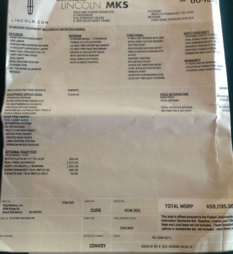 Here is a chance to purchase a fully loaded Lincoln MKS in immaculate shape and condition with only 13,269 miles for substantially less than what you would pay for a new luxury vehicle and still has 37,000 miles and 33 months of Full Warranty left. This car was owned by a non-smoker, no children adult and the car was garage kept and seen very little outside winter weather. This car will be turned into Lincoln Lease at the end of the auction if it doesn't sell and the reason it is being listed here, is that I have a new one on order and if I can make a few dollars over the lease buyout and make someone happy...........why not! Note: I will deliver this car to pretty much anyplace in the continental US for very little additional cost. If your interested contact me and I will provide you a cost delivered to your doorstep. |