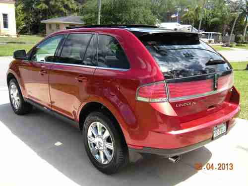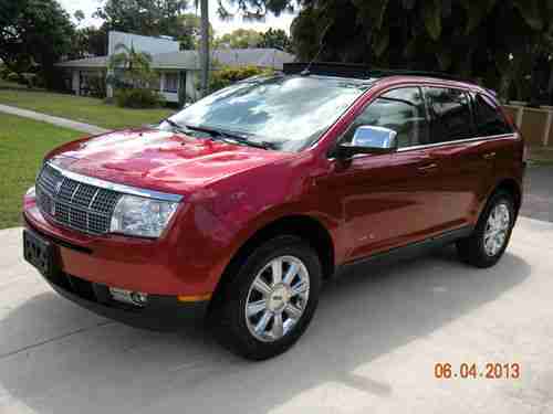 UP FOR AUCTION WE HAVE AN EXCEPTIONALLY CLEAN 2007 LINCOLN MKX V6 FRONT WHEEL DRIVE SUV/CROSSOVER WITH THE PREMIUM PACKAGE..3.5 LITER 265 HORSEPOWER V6 ENGINE..THIS SUV COULD EASILY PASS FOR A 30,000 MILE VEHICLE, IT'S THAT NICE..ALWAYS A SOUTH FLORIDA SUV..NEVER IN THE NORTHERN SALT/WINTERS..SOLD WITH "NO RESERVE"..BIDDING STARTS AT JUST $12,950.00..IF THE SUV GETS JUST 1 BID, IT SELLS..ORIGINAL WINDOW STICKER WAS ABOUT $44,000.00 IN 2007, REPLACEMENT COST NOW IS ALMOST $50,000.00 AS THIS 1 IS EQUIPPED..FACTORY NAVIGATION..FACTORY POWER PANORAMIC MOON ROOF..FACTORY 18"CHROME WHEELS..(4) BRAND NEW MICHELIN TIRES..HEATED AND AIR CONDITIONED FRONT SEATS..MEMORY SEAT PACKAGE..FACTORY FOG LIGHTS..FACTORY PREMIUM CD-6 SOUND SYSTEM..MULTIFUNCTION STEERING WHEEL..POWER REAR HATCH..POWER OPERATED FOLDING REAR SEATS..FUEL/TRIP COMPUTER..A 2 OWNER FLORIDA LINCOLN MKX..6 SPEED AUTOMATIC TRANSMISSION..FRONT AND REAR A/C..GETS ABOUT 23 MPG DOWN THE FREEWAY @ 70 MPH..CRUISE CONTROL..POWER EVERYTHING..DRIVES GREAT.. ORIGINAL MANUALS..1 MASTER COMBO KEY....BEAUTIFUL 100% ORIGINAL REDFIRE PEARL METALLIC PAINT, EASILY A "9"..LIGHT PARCHMENT HEATED AND AIR CONDITIONED LEATHER SEATS..HIGH POLISHED LIGHT ASH WOOD TRIM ON THE DASH, DOOR PANELS, AND STEERING WHEEL), WHICH IS ALSO EASILY A "9".