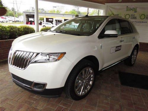 This 2013 LINCOLN MKX 4dr AWD 4dr Sedan features a 3.7L Ti-VCT V6 engine 6cyl Gasoline engine. It is equipped with a 6 Speed Automatic transmission. The vehicle is White Platinum Metallic Tri-Coat with a Tan Leather interior. It is offered with the remaining extended warranty. - Air Conditioning, Dual Zone Climate Control, Cruise Control, Tinted Windows, Power Steering, Power Windows, Power Door Locks, Power Mirrors, Leather Steering Wheel, Leather Shifter, Power Drivers Seat, Power Passenger Seat, Memory Seat Position, Heated Seat, Rear Air Conditioning, Clock, Tachometer, Digital Info Center, Homelink System, Tilt Steering Wheel, Telescoping Steering Wheel, Steering Wheel Radio Controls, Sunroof, Driver Airbag, Passenger Airbag, Side Airbags, Keyless Entry, Security System, ABS Brakes, Traction Control, Rear Defogger, Fog Lights, Intermittent Wipers, AM/FM, CD Player, THX Premium Sound System, Leather Interior Surface,, Premium Sound, Reverse Camera, Aux. Audio Input, Navigation System - Contact Internet Manager at 888-893-3136 or webleads.cflsp@crossroadscars.com for more information. -