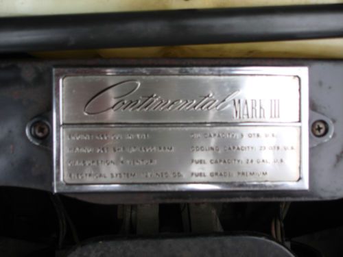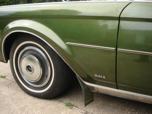 ****RE-LISTED***** previous buyer provided pay pal deposit- but had situations arise and was not able to purchase car, SO, heres everyones second chance VERY LOW RESERVE- FOR SALE: 1970 Lincoln Continental Mark III--- ONE OWNER- ALL ORIGINAL 44,330 miles You are bidding on a very original Mark III- Only 21,432 Mark III's were built in 1970. Always distinguished and known for Lincolns' infamous battles with Cadillac in the early 1970's. 1970 Motor Trend winner over the Cadillac Eldorado- and it shows in the tremendous detail with the interior and exterior. Interior is in very nice condition. Black leather and vinyl interior nicely equipped with factory options. The only thing known not to work is the two rear windows. surely a vacuum issue just never sorted it out since never used. Front and Rear seats no cracking or excessive wear. Steering wheel and all switches in good to excellent shape. Blower motor works, temperature works, speed control, stereo, electric attanea, drivers and passenger seat all electric and each function works, all lights front and rear work, including switches,- Maple Wood inlay in dash in very good condition, Maple Steering wheel with Brass Inlay in very good shape- all glass and chrome framing in good shape- no chips- all seat belts (lap and shoulder separate) - all gauges work including flasher indicators and high beam indicator light- Cartier clock functioning- All carpet original and in good shape, no cigarette burns or tears or cuts- no tears cuts on seats. Trunk interior original carpet and spare carpet cover-spare tire- jack- touch up paint